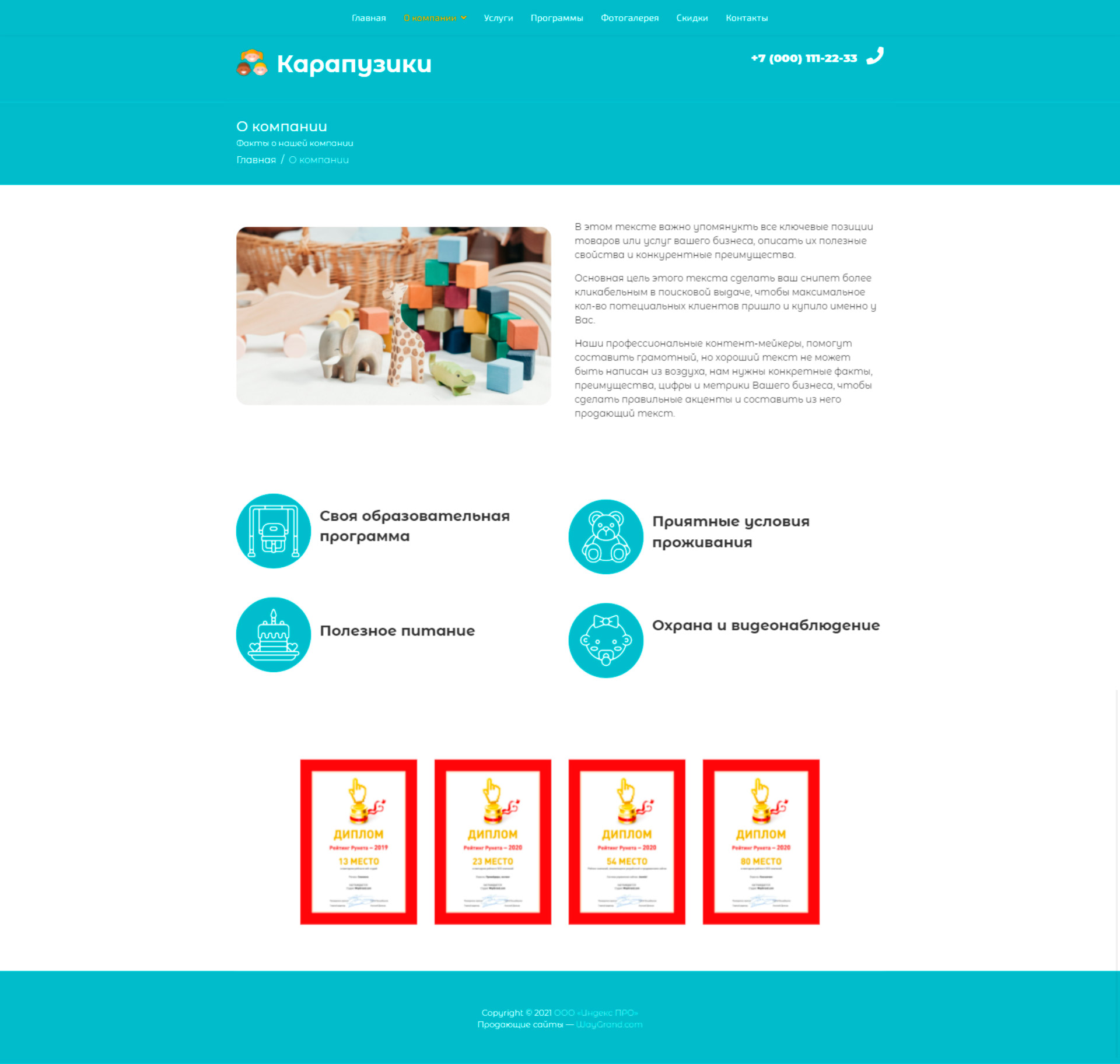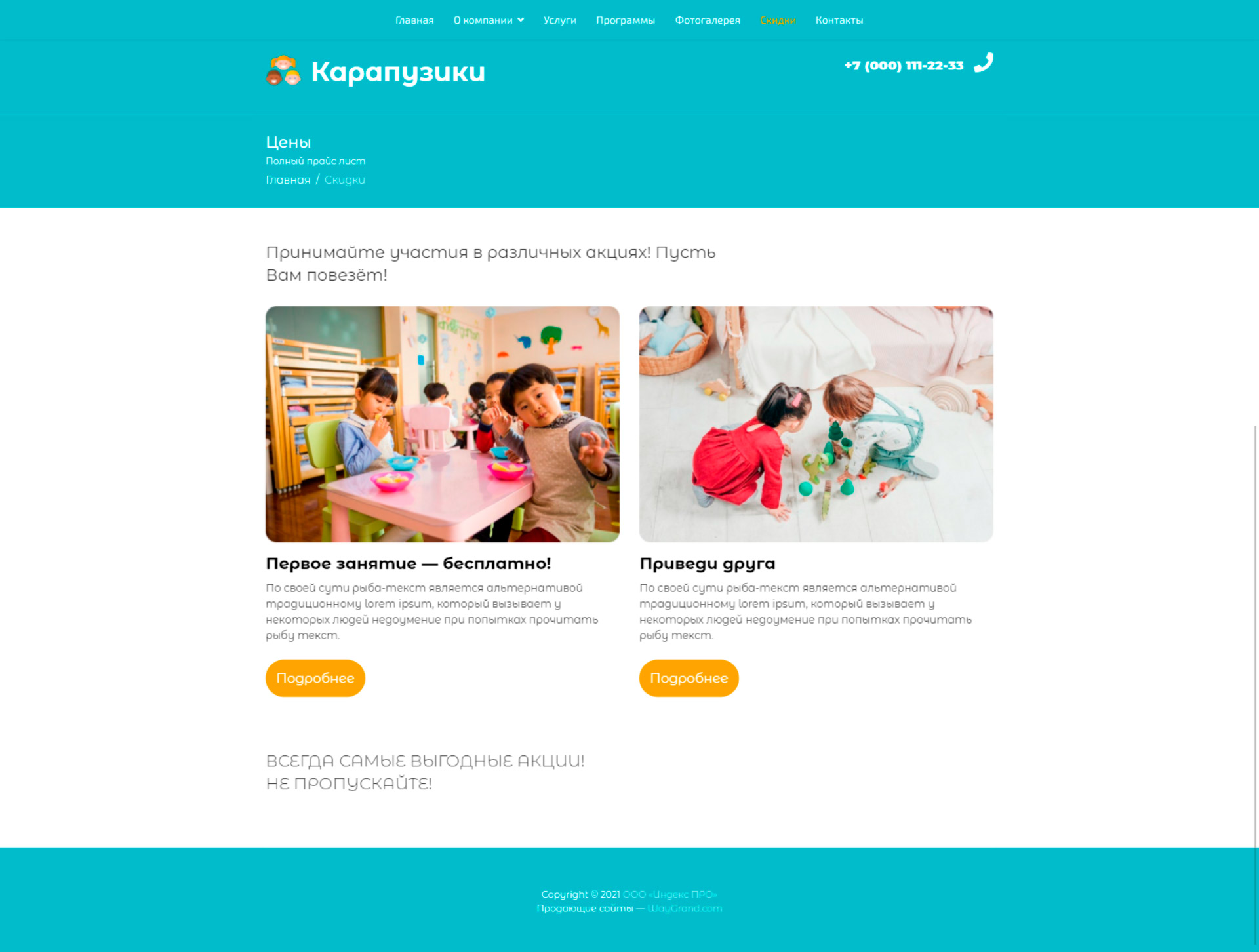 Закажите готовый продающий сайт визитка #0419301 в Невинномысске за 5-7 дня «под ключ»: свёрстан, отрисован и готов к рекламе. Тематика шаблона «Частный детский центр».