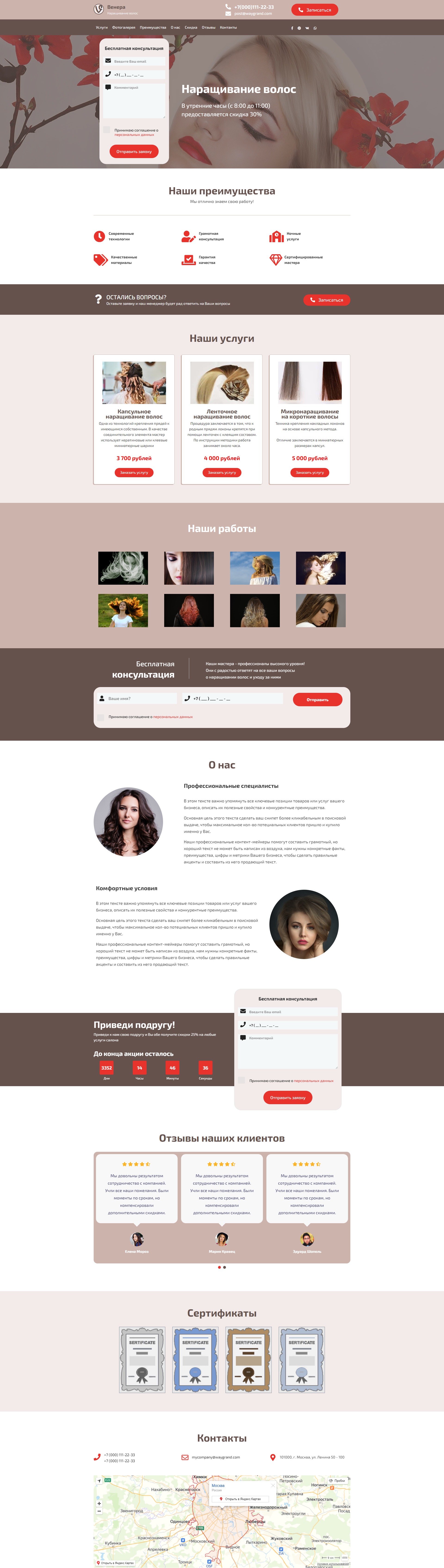Закажите готовый продающий сайт лендинг #1108201 в Невинномысске за 1-3 дня «под ключ»: свёрстан, отрисован и готов к рекламе. Тематика шаблона «Наращивание волос».