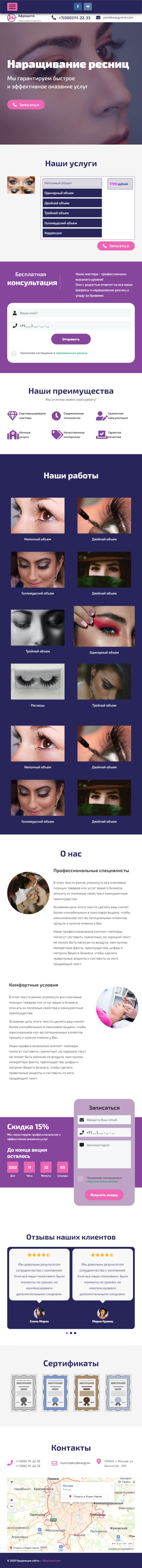 Закажите готовый продающий сайт лендинг #1117201 в Невинномысске за 1-3 дня «под ключ»: свёрстан, отрисован и готов к рекламе. Тематика шаблона «Наращивание ресниц».