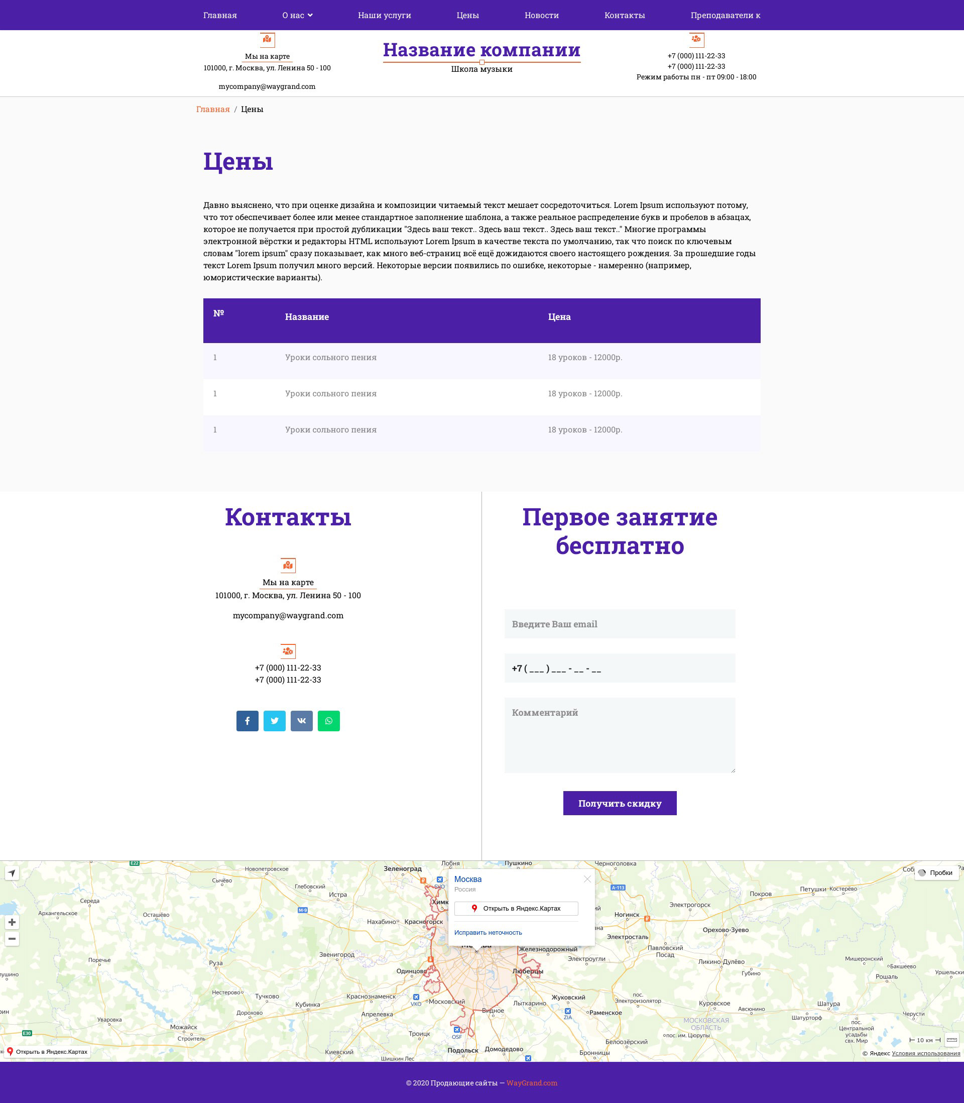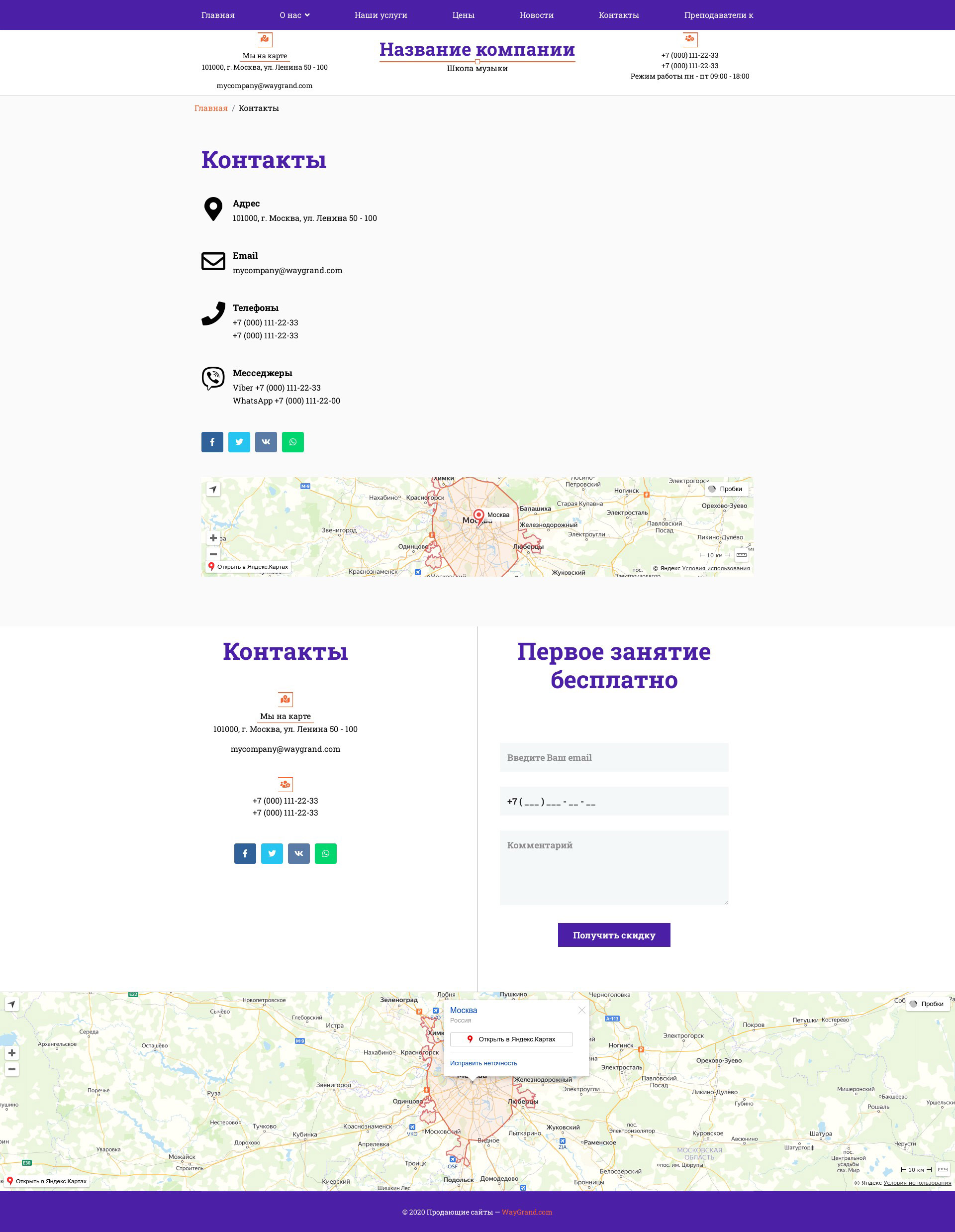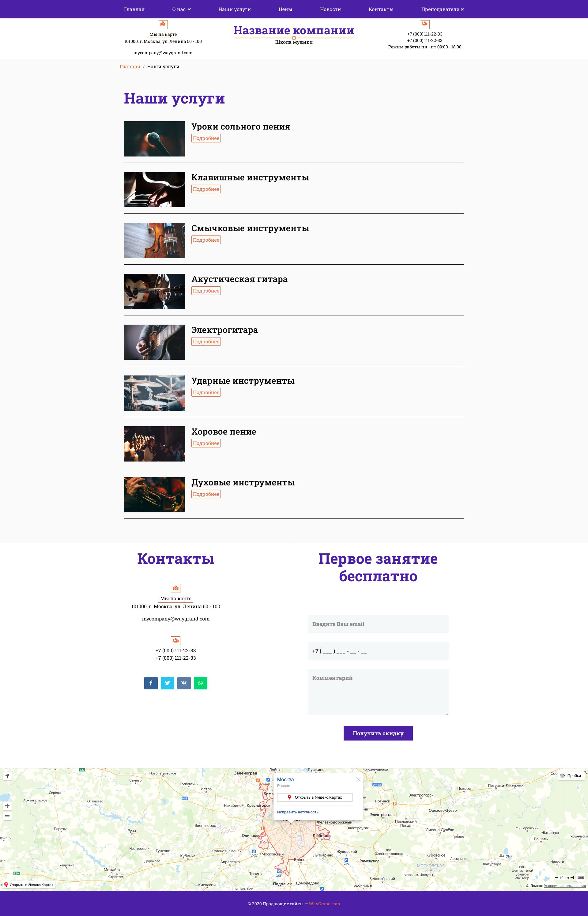 Закажите готовый продающий сайт визитка #1431301 в Невинномысске за 5-7 дня «под ключ»: свёрстан, отрисован и готов к рекламе. Тематика шаблона «Школа музыки».