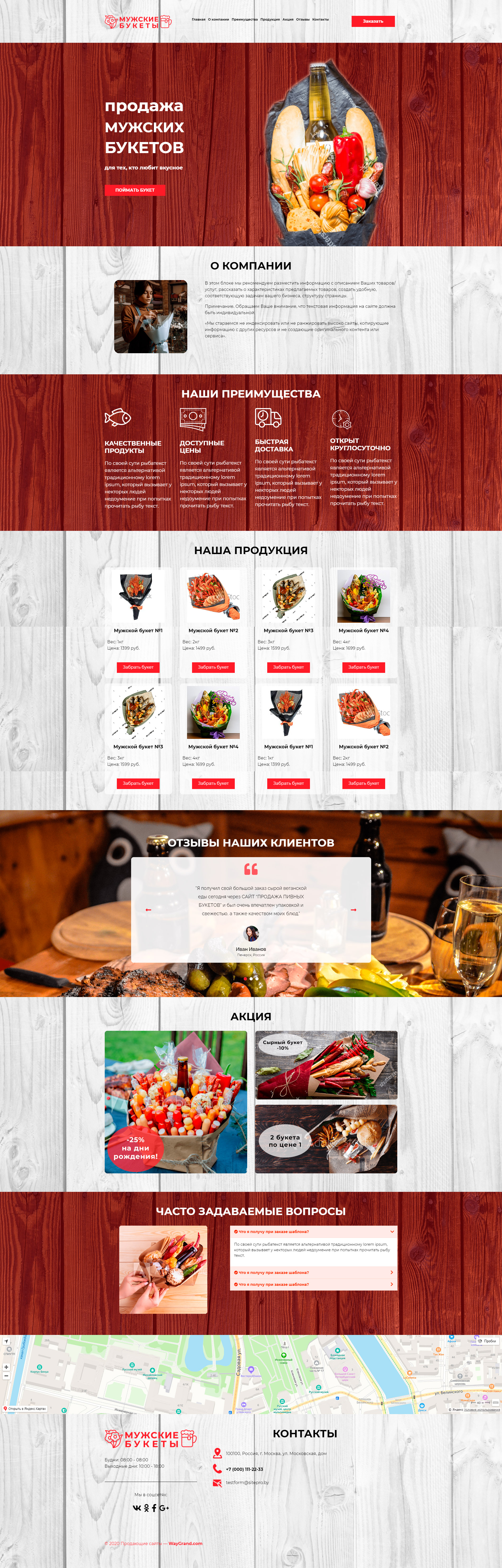 Закажите готовый продающий сайт лендинг #2404204 в Невинномысске за 1-3 дня «под ключ»: свёрстан, отрисован и готов к рекламе. Тематика шаблона «Мужские букеты».