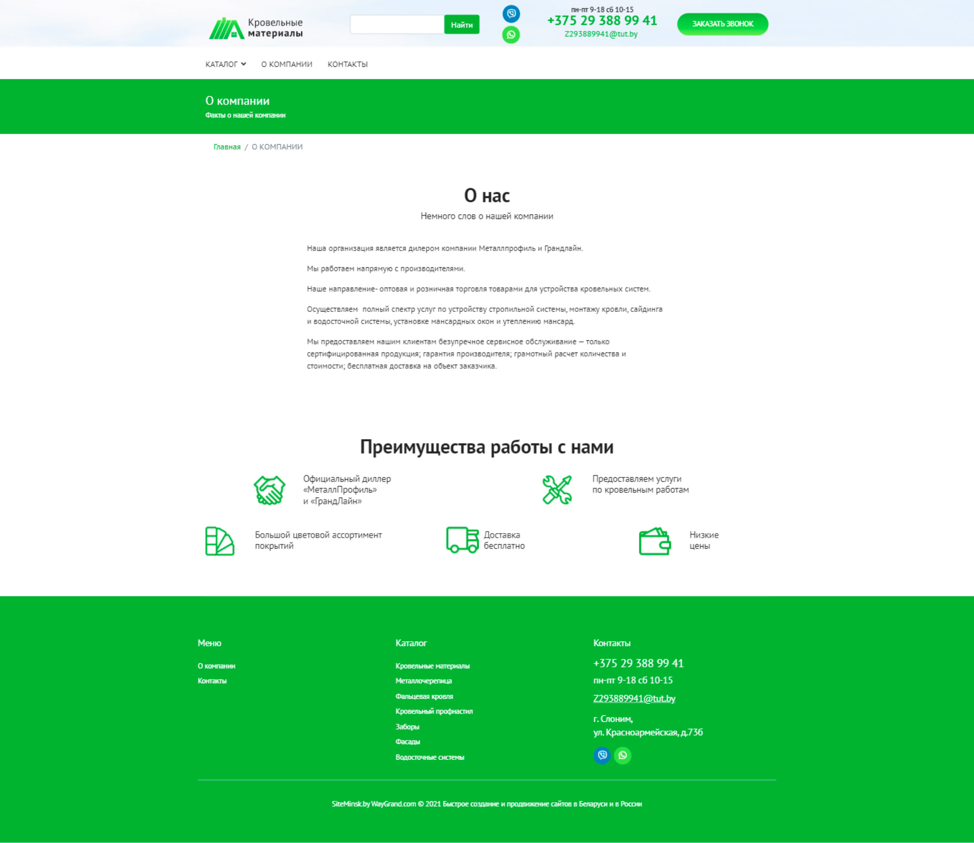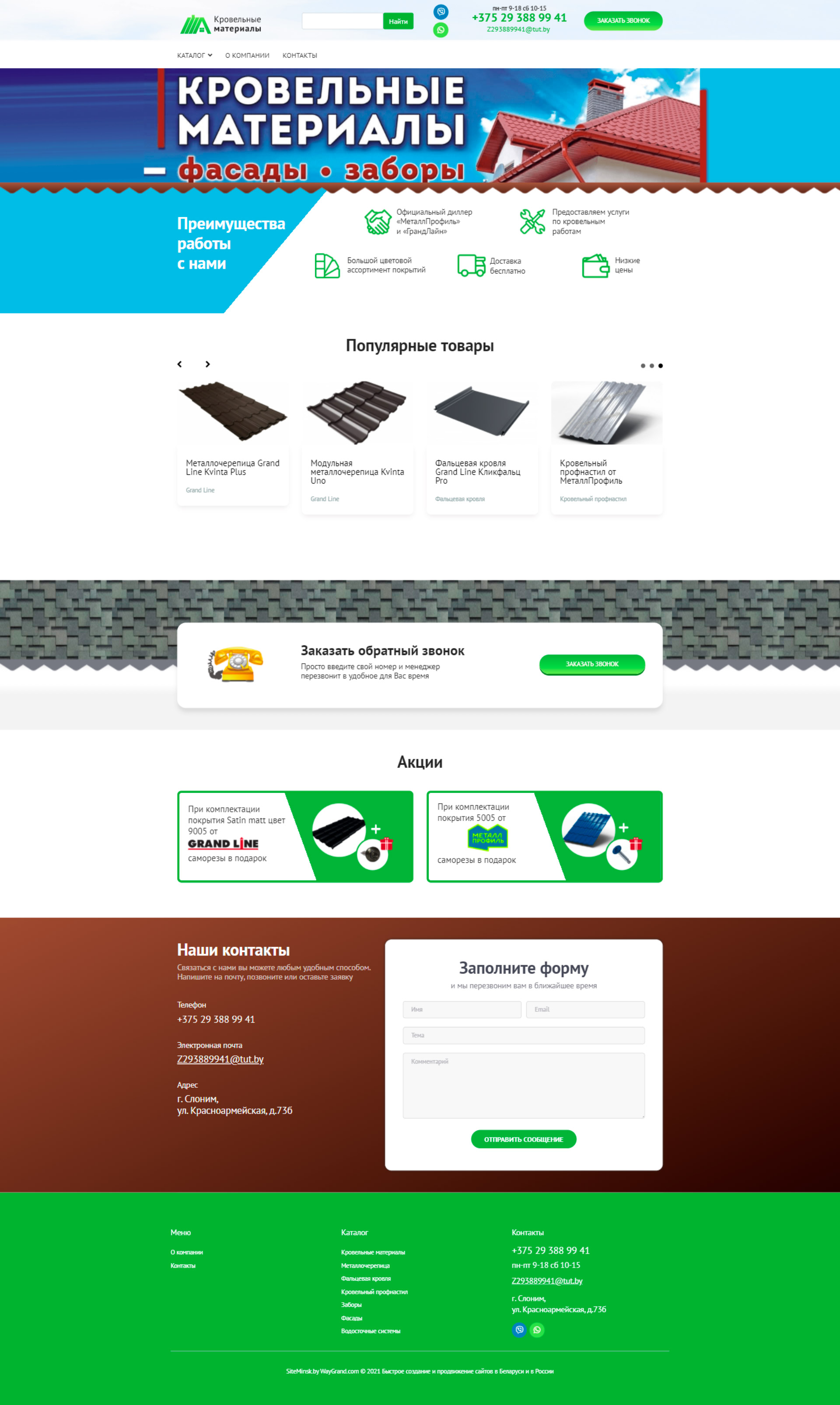 Закажите готовый продающий сайт визитка #324 в Невинномысске «под ключ» на waygrand по выгодной цене: свёрстан, отрисован и готов к рекламе. Тематика шаблона «Кровельные материалы».